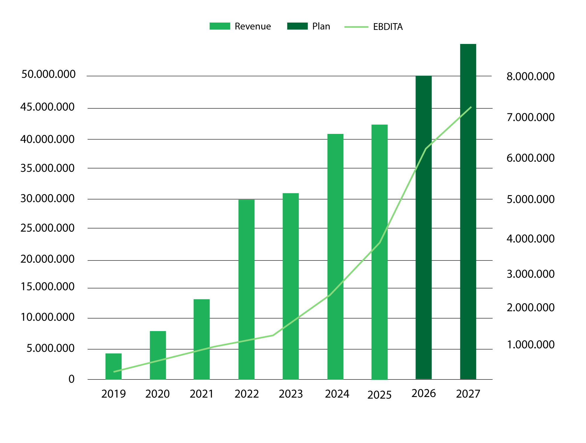 Since 2019, we have been on a continuous growth trajectory, expanding our presence across international markets and strengthening our position in the wellness industry. Building on this momentum, we are projecting €45 million in revenue for 2026, with a clear path toward €50 million in 2027. This growth reflects not only increasing demand, but also our commitment to long-term partnerships, product innovation, and scalable operations.